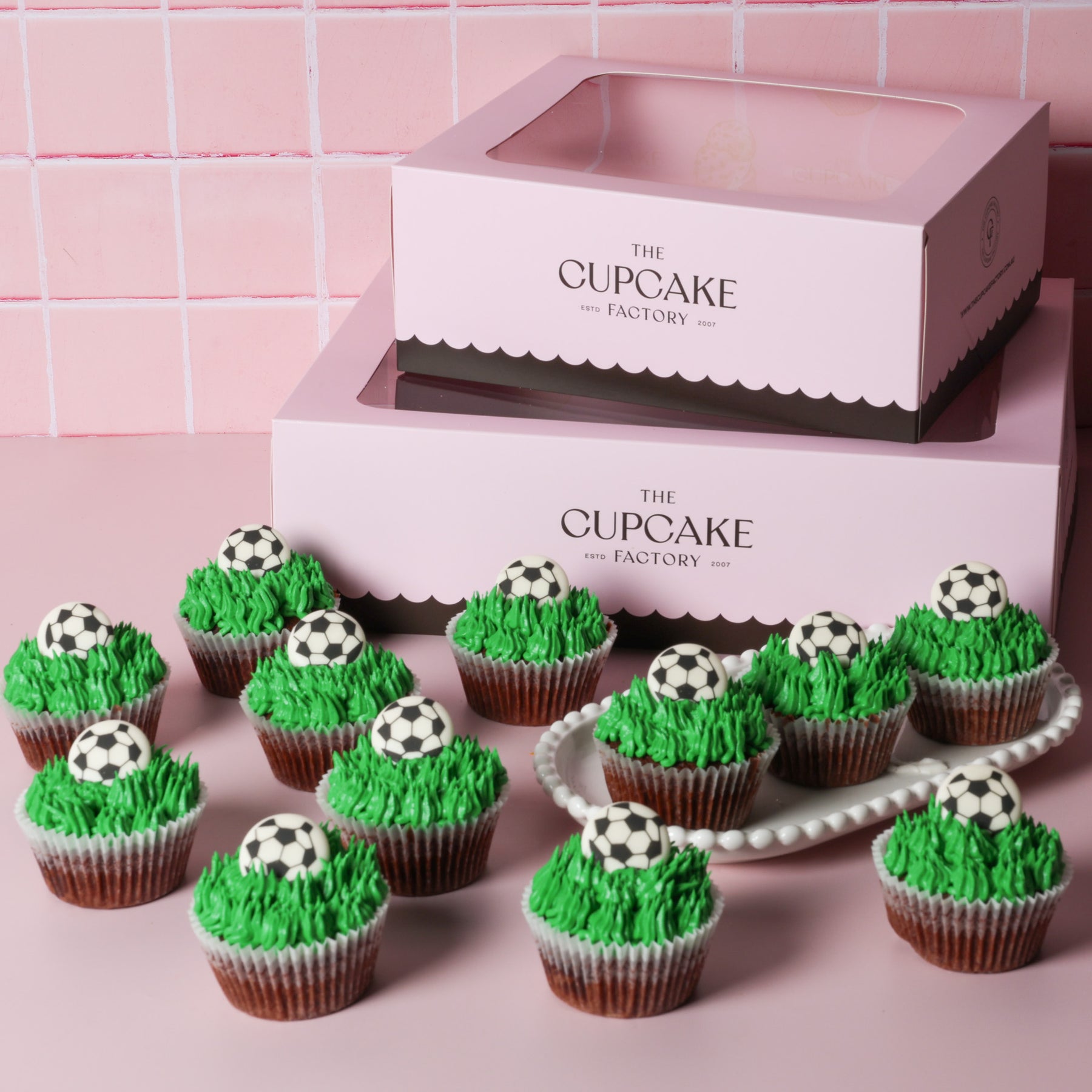 Score big with these sporty treats! Topped with luscious buttercream piped like fresh green grass and finished with cute soccer ball decorations, perfect for fans, players, and party champions alike.