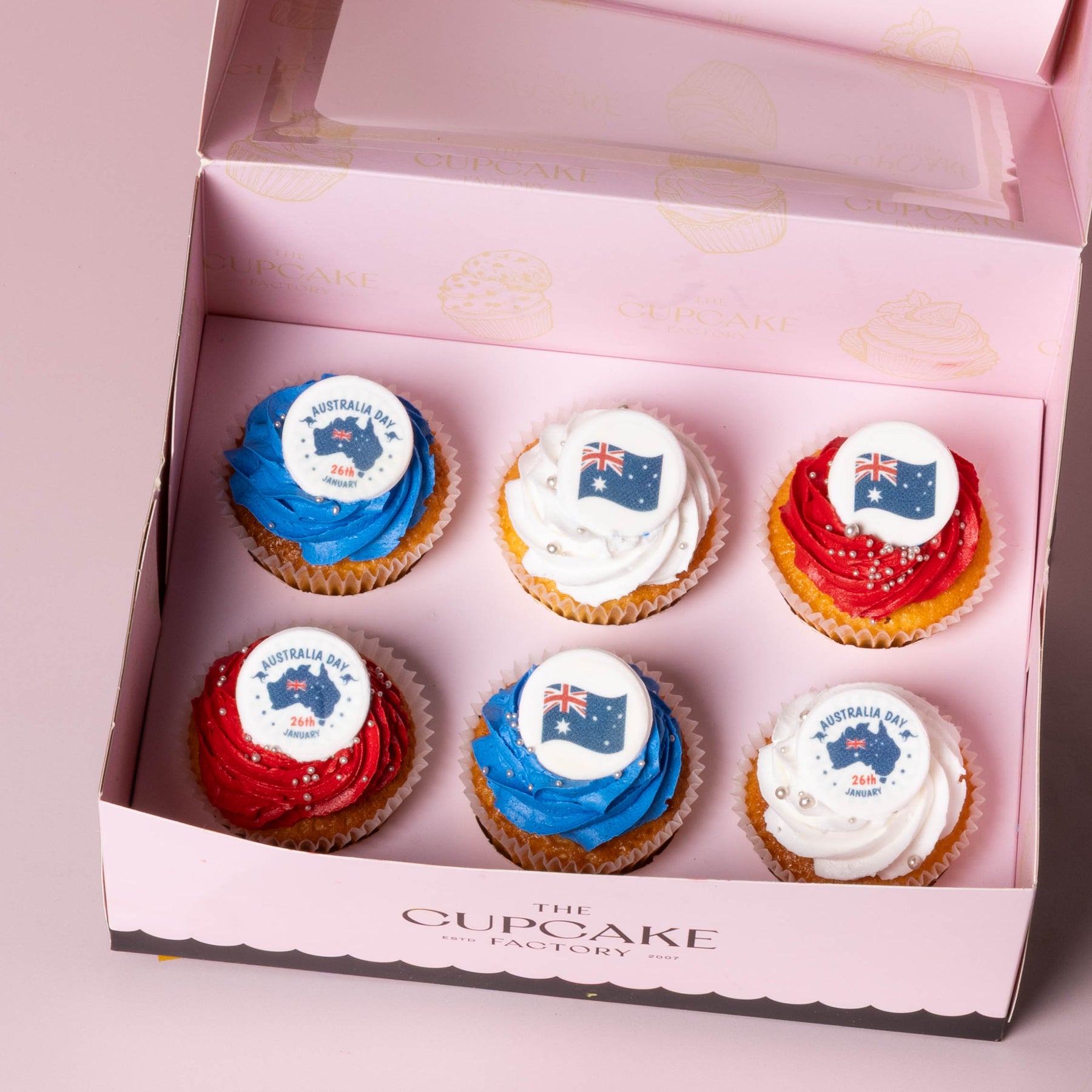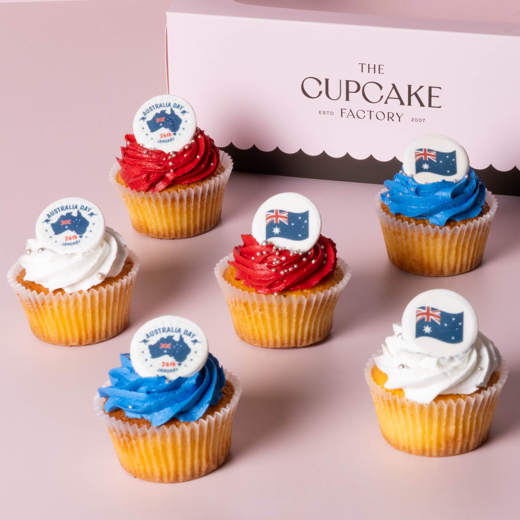 Celebrate Australia Day with these vibrant cupcakes, each topped with bold blue buttercream icing and sparkling silver ball sprinkles. Finished off with a printed plaque featuring the Australian Flag. Perfect for your Australia Day BBQ or gathering, these cupcakes are the sweetest way to show your Aussie pride!