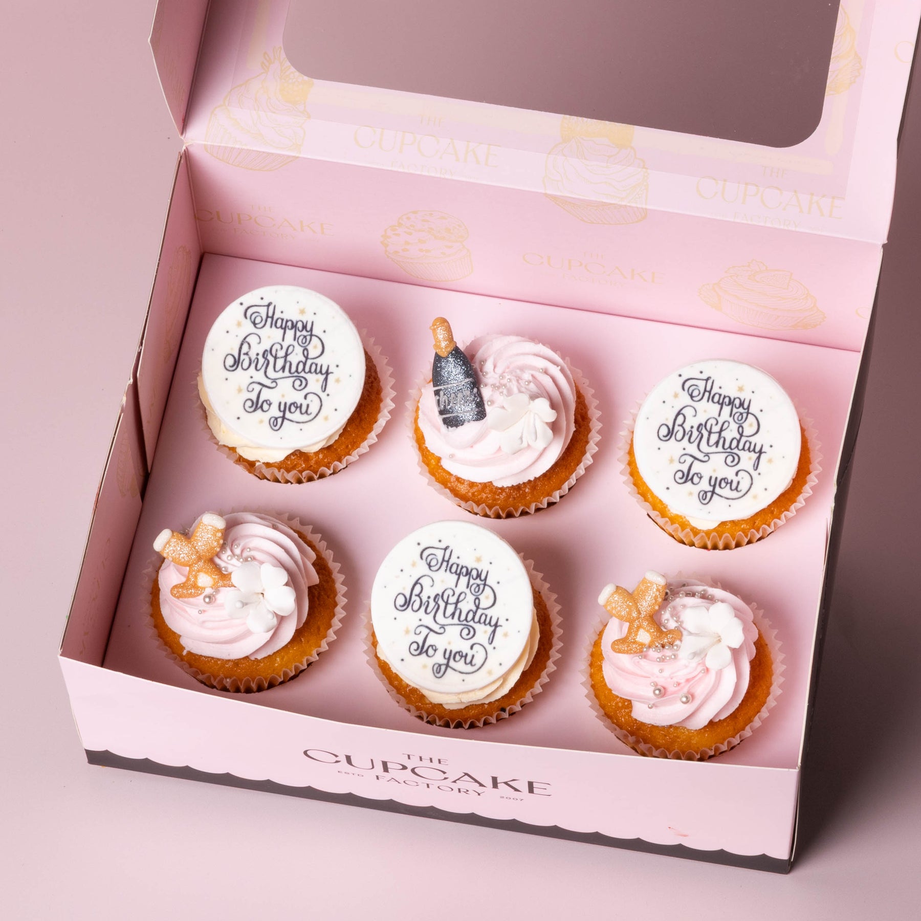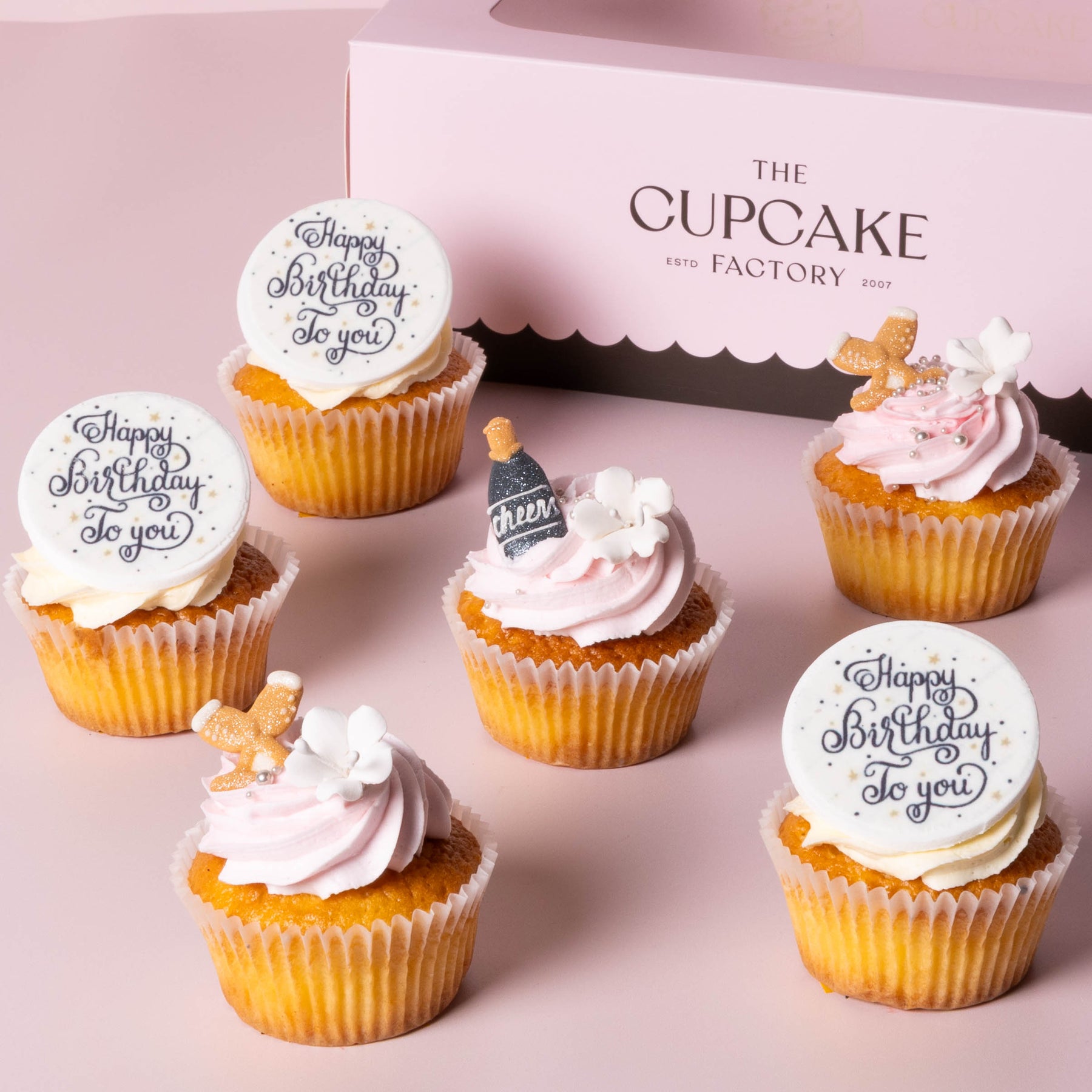 Turn up the charm with these gorgeous cupcakes, topped with swirls of creamy pink buttercream and sprinkled with joyful birthday decorations. Perfect for adding a splash of sweet style to any birthday bash.