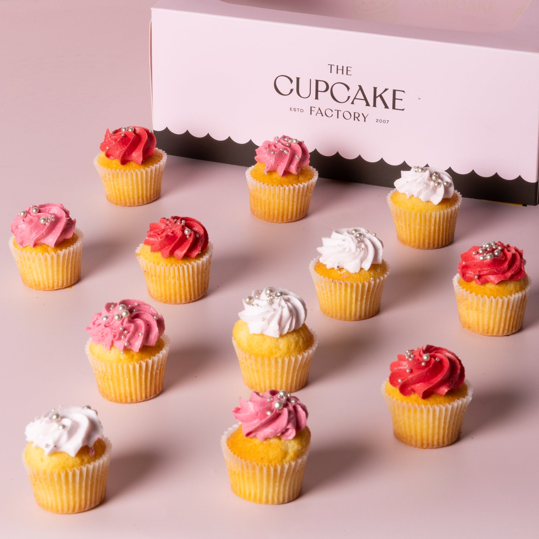 Pink cupcakes require 48 hours’ notice as they are made fresh for order. Ordering in advance secures your preferred flavours and colours.