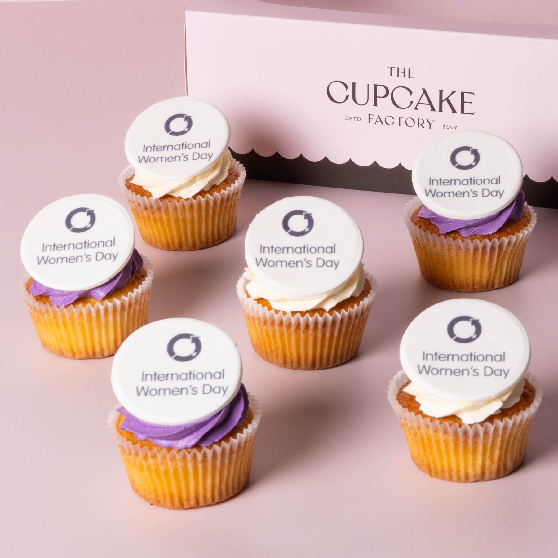 Producing a consistent look across 12 cupcakes is tricky. International Women’s Day Cupcakes ensure uniform style and presentation without the time or effort of baking.