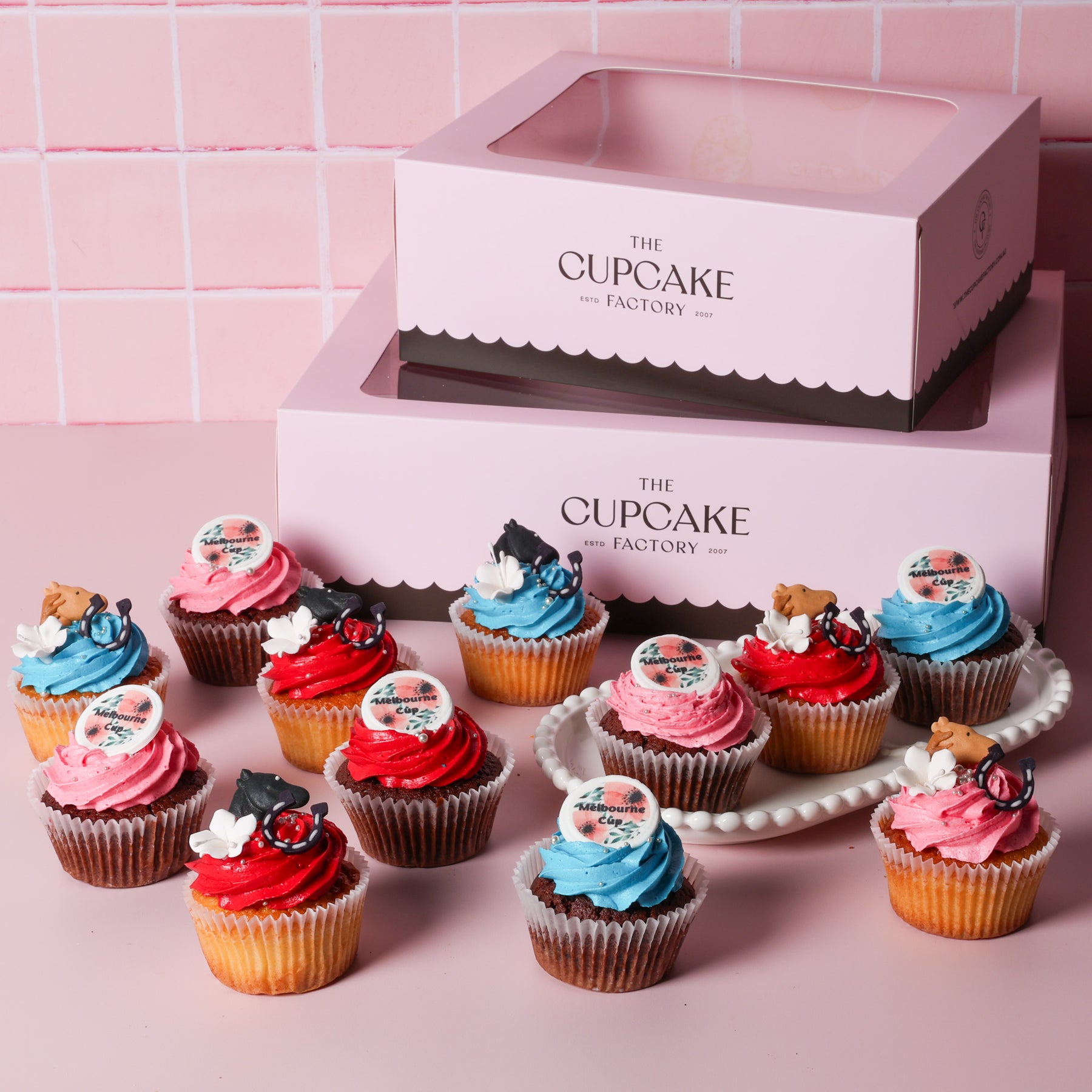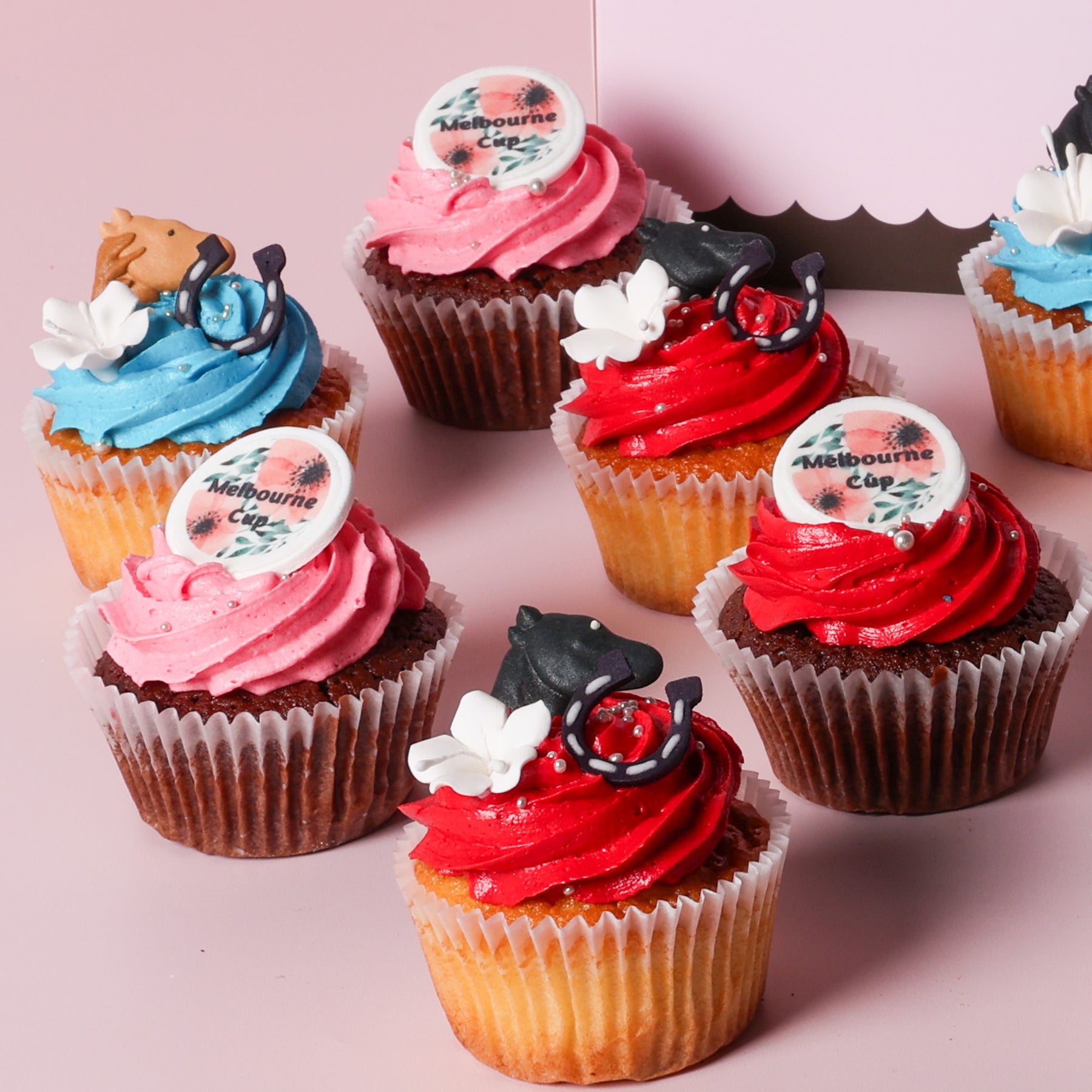 Each box of Melbourne Cup Cupcakes includes 12 cupcakes. You can also choose your preferred size: