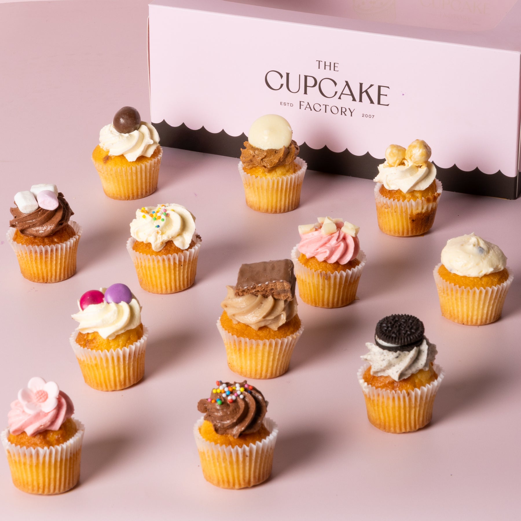 Small in size, big on flavour, this bite-sized lineup features a dreamy mix of our most-loved flavours. Think Cookies & Cream, Strawberry Swirl, Classic Vanilla, Rich Chocolate, and zingy Passionfruit. Each one is topped with a swirl of signature buttercream and styled to perfection. Perfect for parties, grazing tables, or a little everyday indulgence.