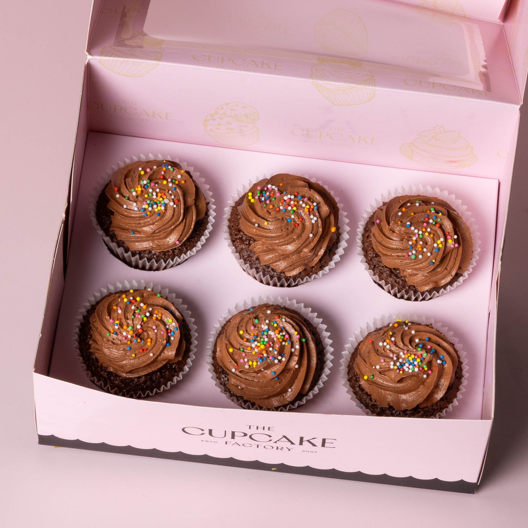 Rich, moist chocolate sponge topped with a velvety swirl of chocolate buttercream and finished with a sprinkle of pure bliss. This one’s for the true chocolate lovers, decadence in every bite.