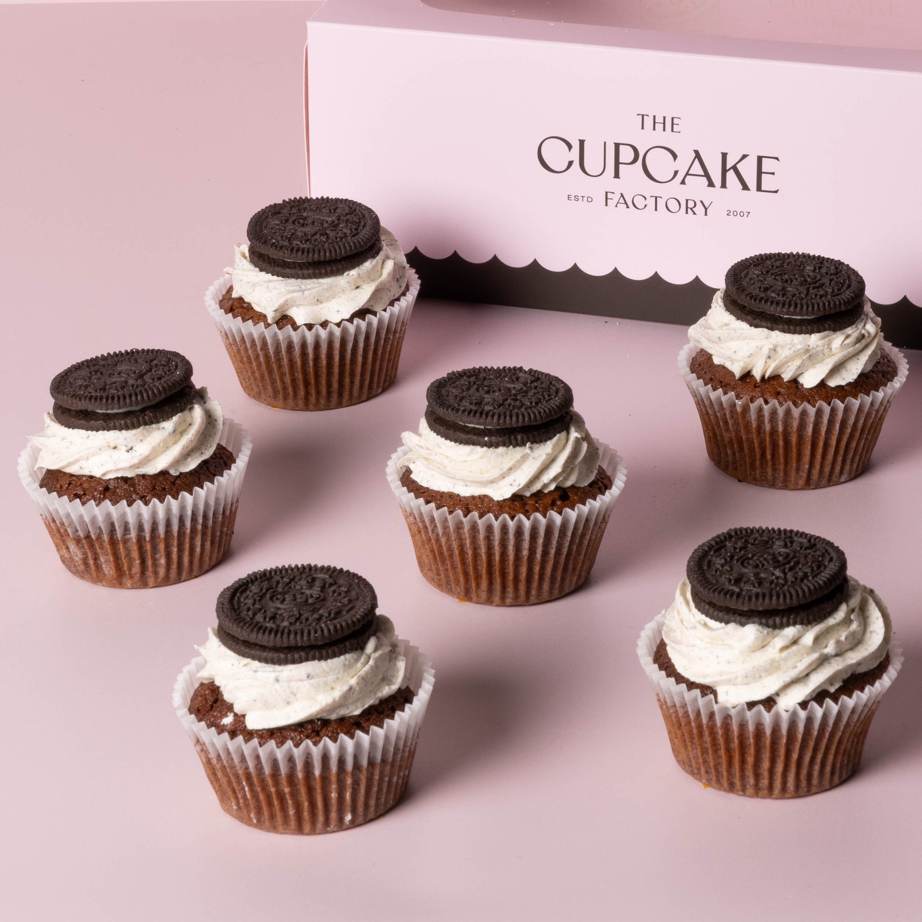 A match made in dessert heaven. Our indulgent cookies and cream cupcake is crowned with Oreo cookie chunks, a swirl of creamy buttercream, and just the right amount of crunch. It’s the perfect mix of smooth, sweet, and irresistible. Also available on our chocolate cupcakes for the ultimate Oreo experience!