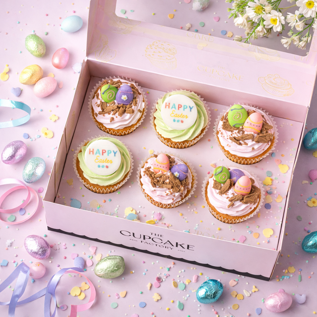Our Easter-themed cupcakes are baked to brighten your celebration, each one crowned with velvety pastel buttercream swirls and finished with the cutest seasonal touches, mini eggs to Easter plaques and delicious flake crumble.