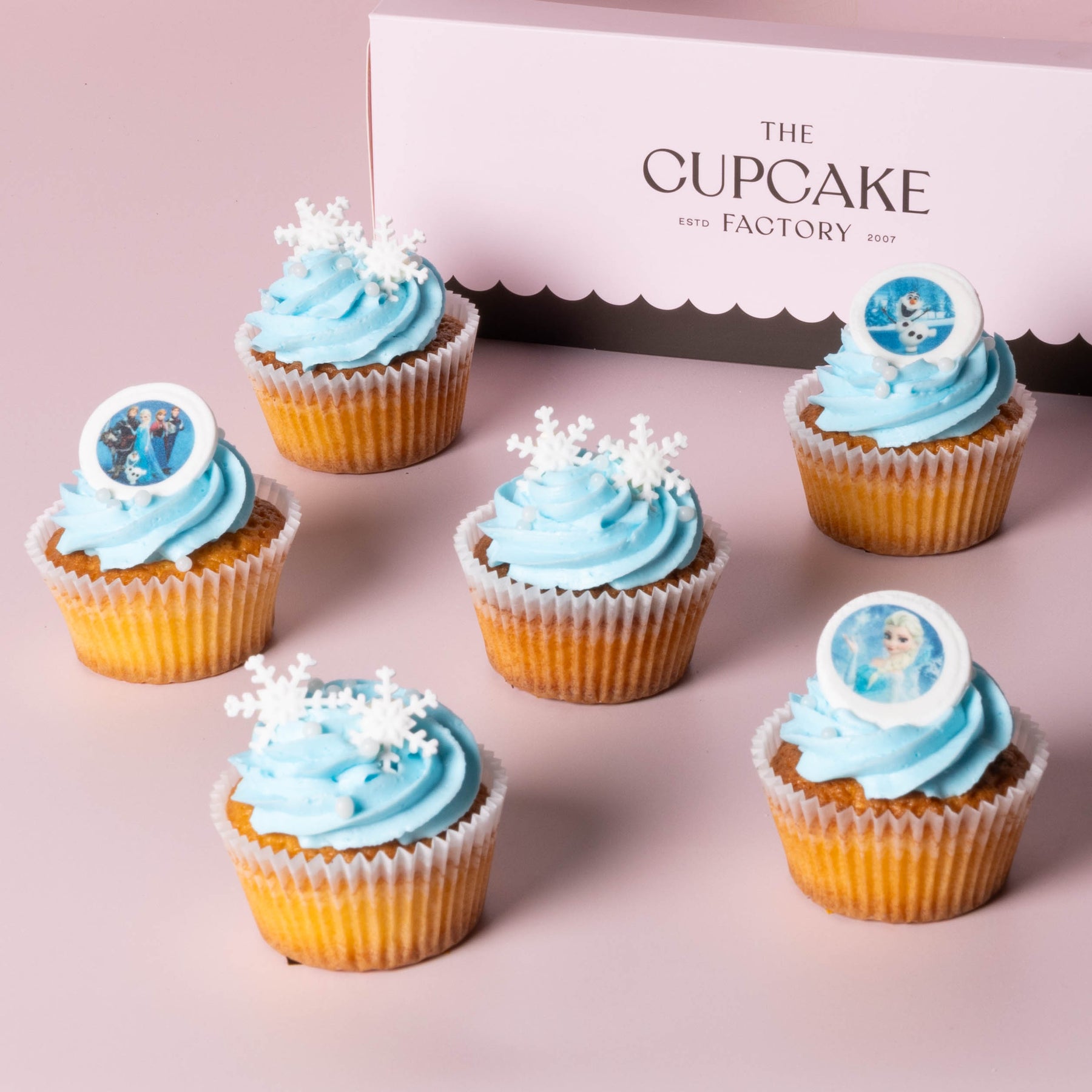 Let it go! And let it sparkle. Our Disney Frozen cupcakes are a winter wonderland of flavour and fun, topped with frosty buttercream swirls in icy blues and soft whites, shimmering snowflake sprinkles, and magical Frozen character toppers and plaques. Scratch-baked, style-forward, and made to melt hearts (not snowmen).