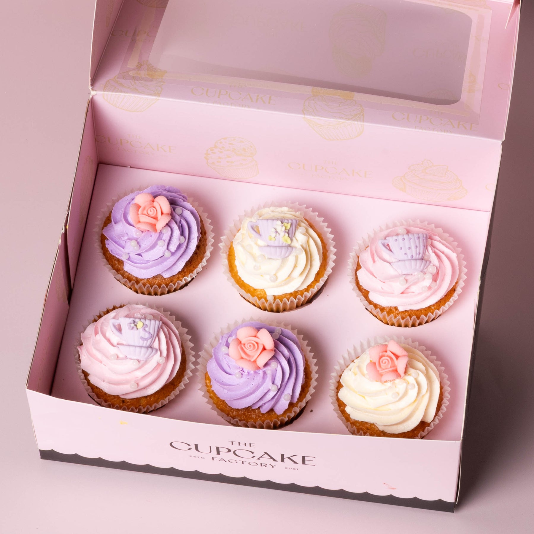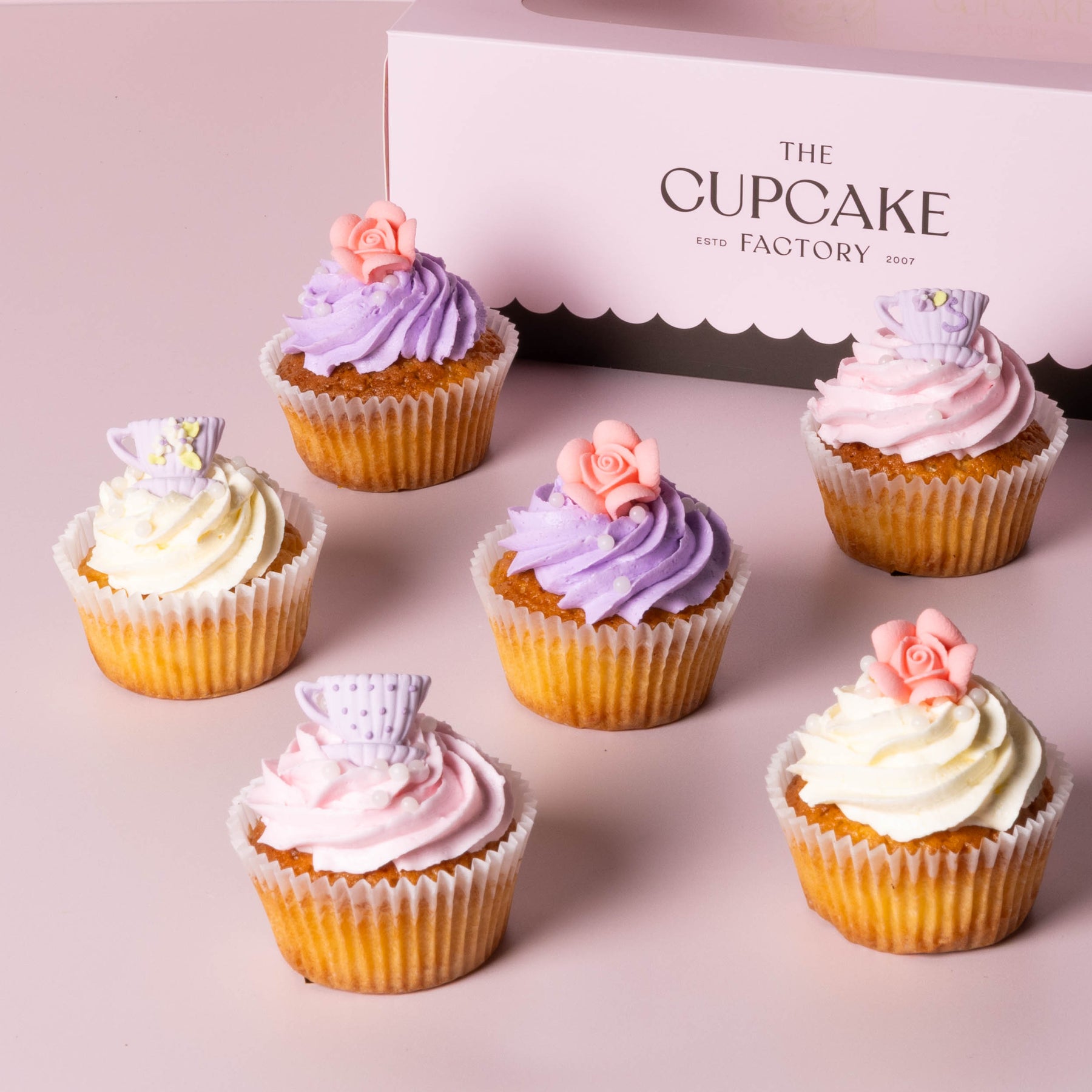 Pretty as a picture and twice as sweet! These cupcakes are topped with luscious swirls of buttercream and adorned with delicate flower and teacup decorations, perfect for your next stylish soirée.