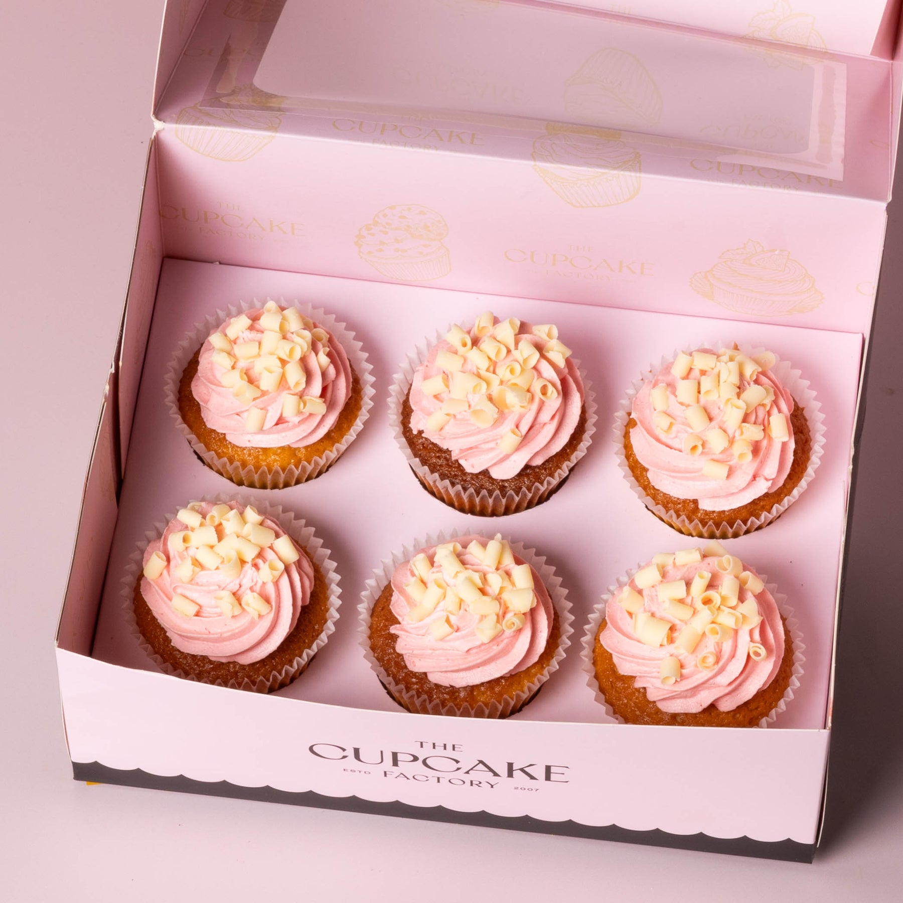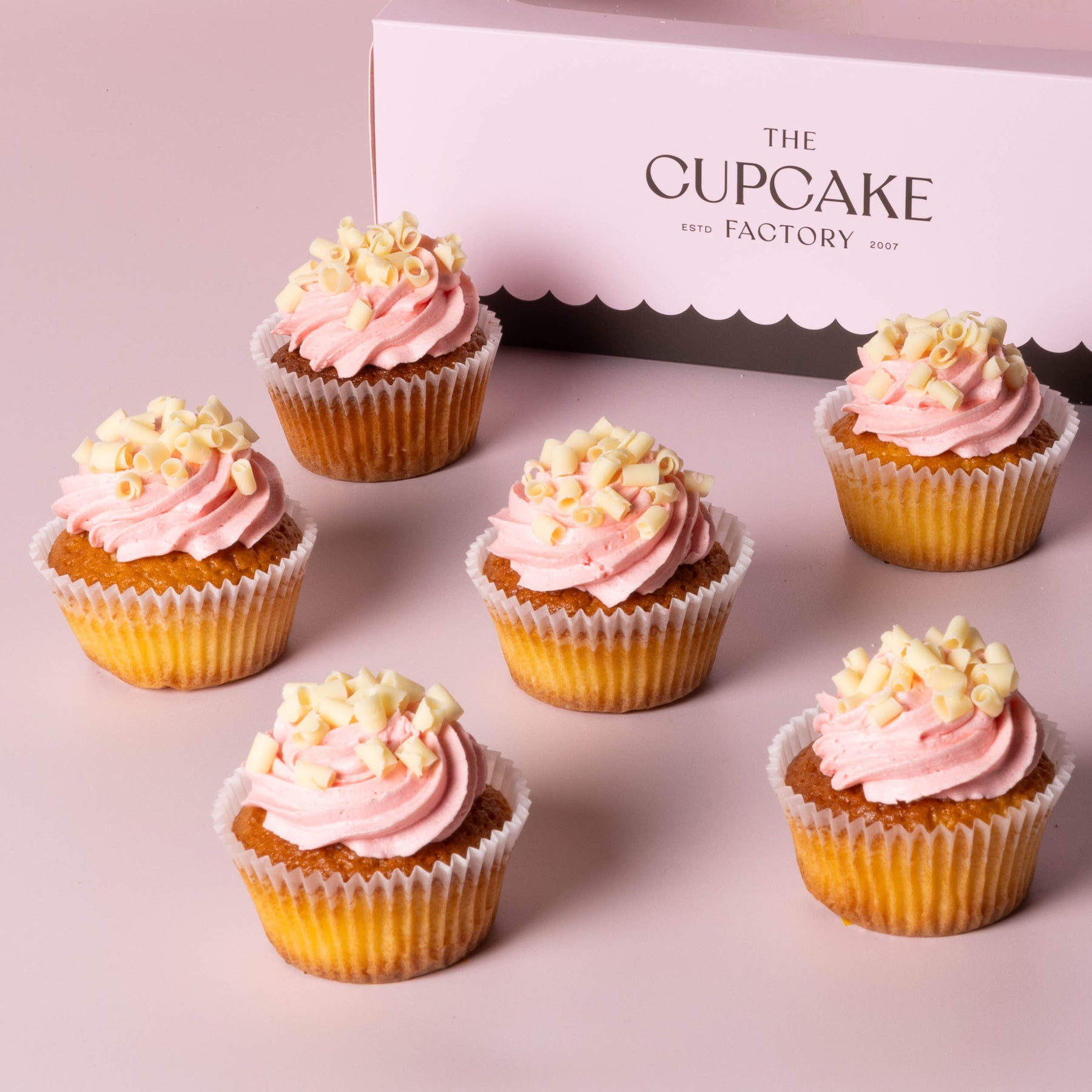 Pretty, playful, and perfectly sweet. This delightful cupcake features a soft vanilla cake base crowned with a swirl of airy pink buttercream and finished with a generous sprinkle of delicate white chocolate curls. It’s a dreamy bite of vanilla and cream with a touch of whimsy, like a celebration wrapped in frosting.