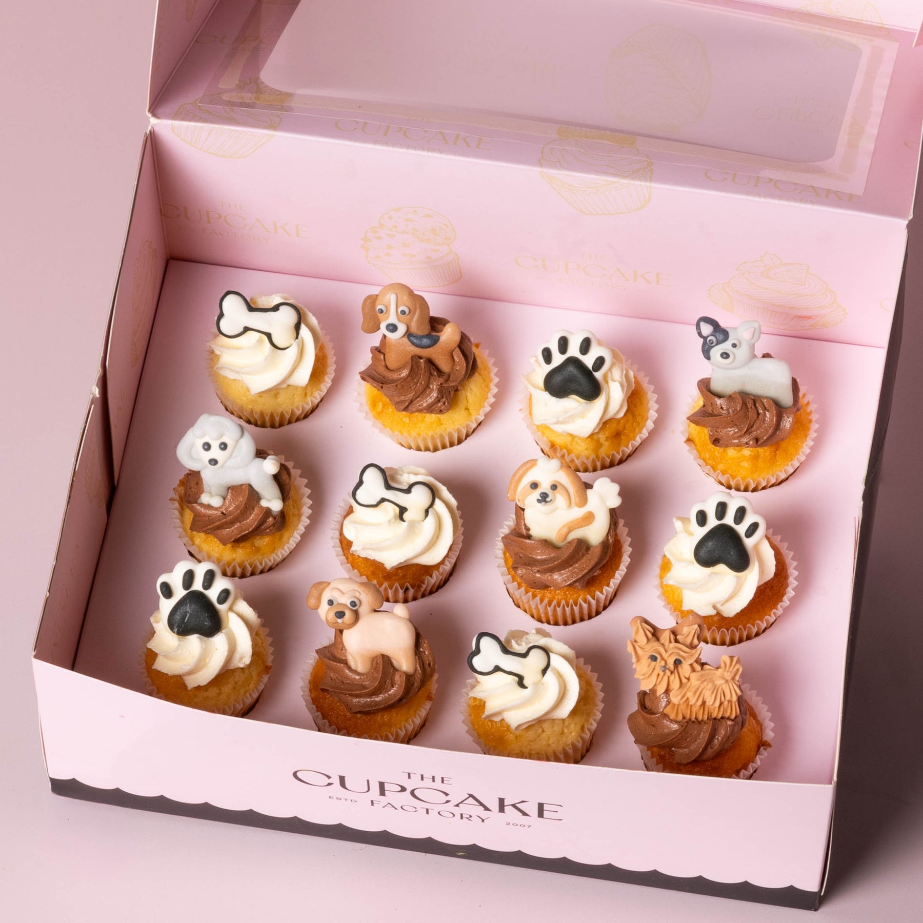 Adorable and full of charm! These cupcakes come dressed in cozy neutral and brown buttercream swirls, topped with cute puppy dog decorations. Perfect for parties, gifts, or anytime you want to add a little tail-wagging sweetness.