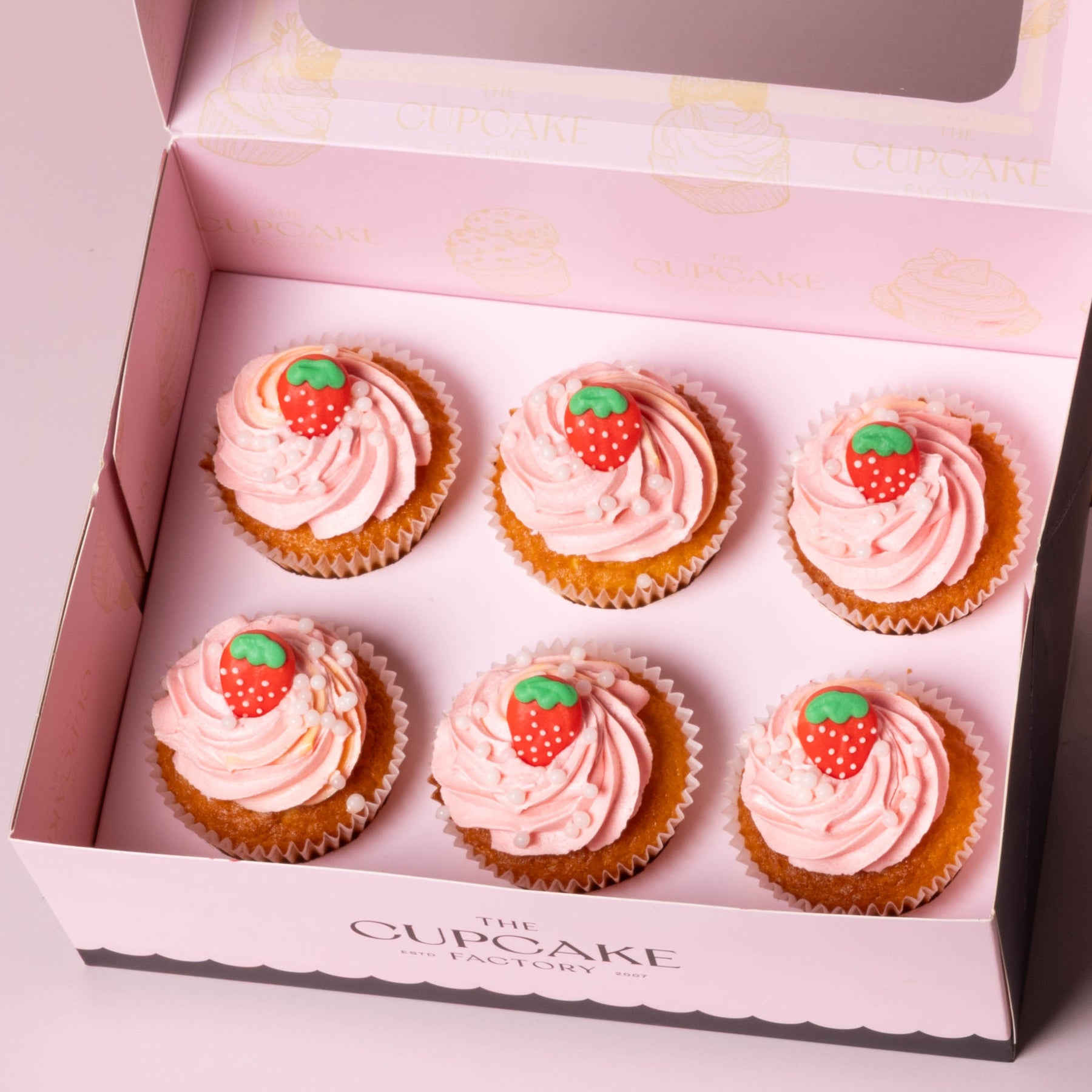 Sweet meets stunning! These gorgeous cupcakes are topped with luscious buttercream, delicate sugar flowers, and strawberry accents, perfect for adding a touch of elegance and delight to any celebration.