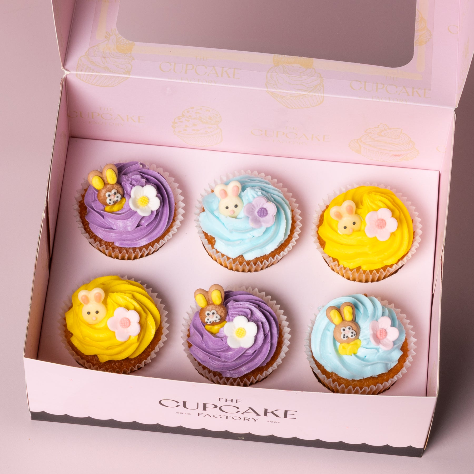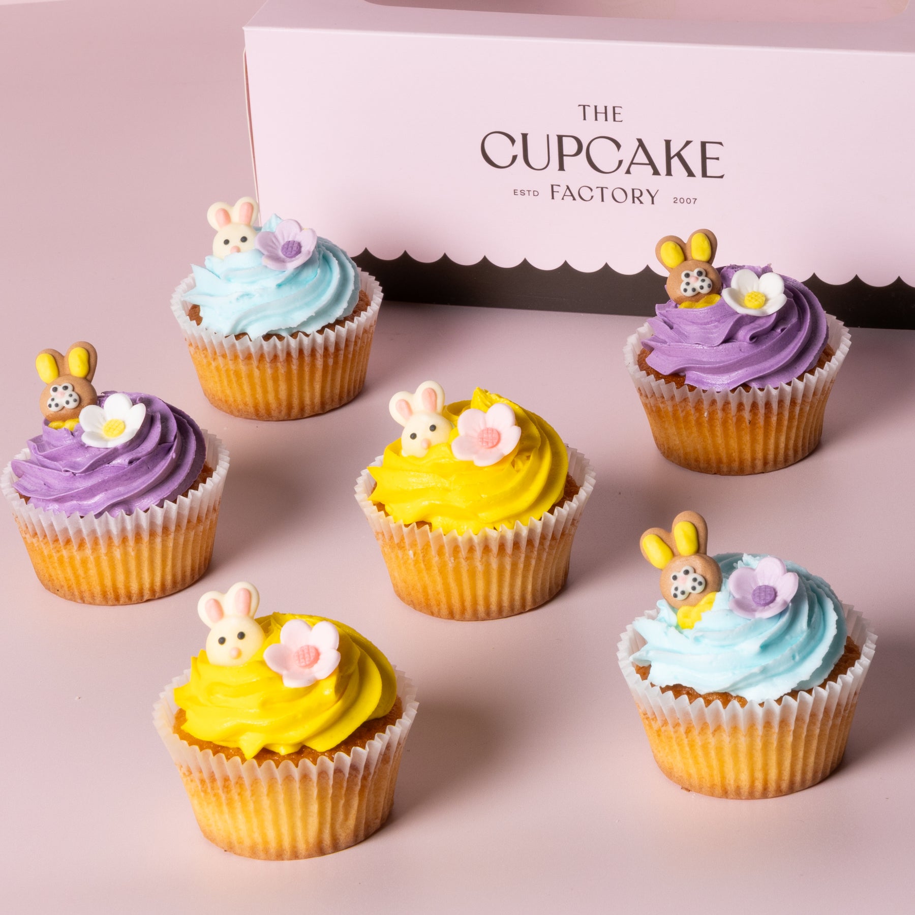 Bounce into Easter with a box full of cupcakes! Our Bunny Cupcakes are baked to delight, topped with swirls of dreamy pastel buttercream and brought to life with fluffy bunny faces and the sweetest little blossoms. They’re playful, picture-perfect, and guaranteed to steal the show at any Easter celebration.