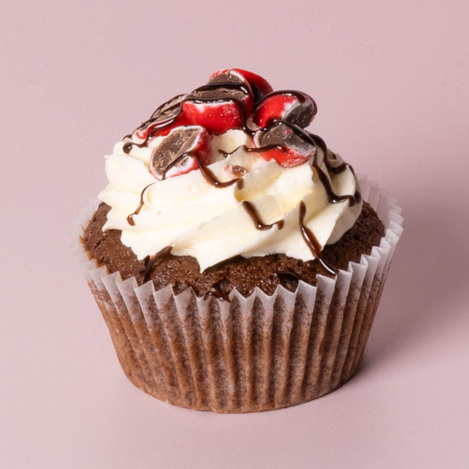 A nostalgic twist on a classic treat. Our vanilla or chocolate cupcake is topped with smooth vanilla buttercream, crowned with squashed Jaffas, and drizzled with rich chocolate sauce. It’s the perfect balance of orange, chocolatey, and creamy, a sweet indulgence you’ll want to savor in every bite.