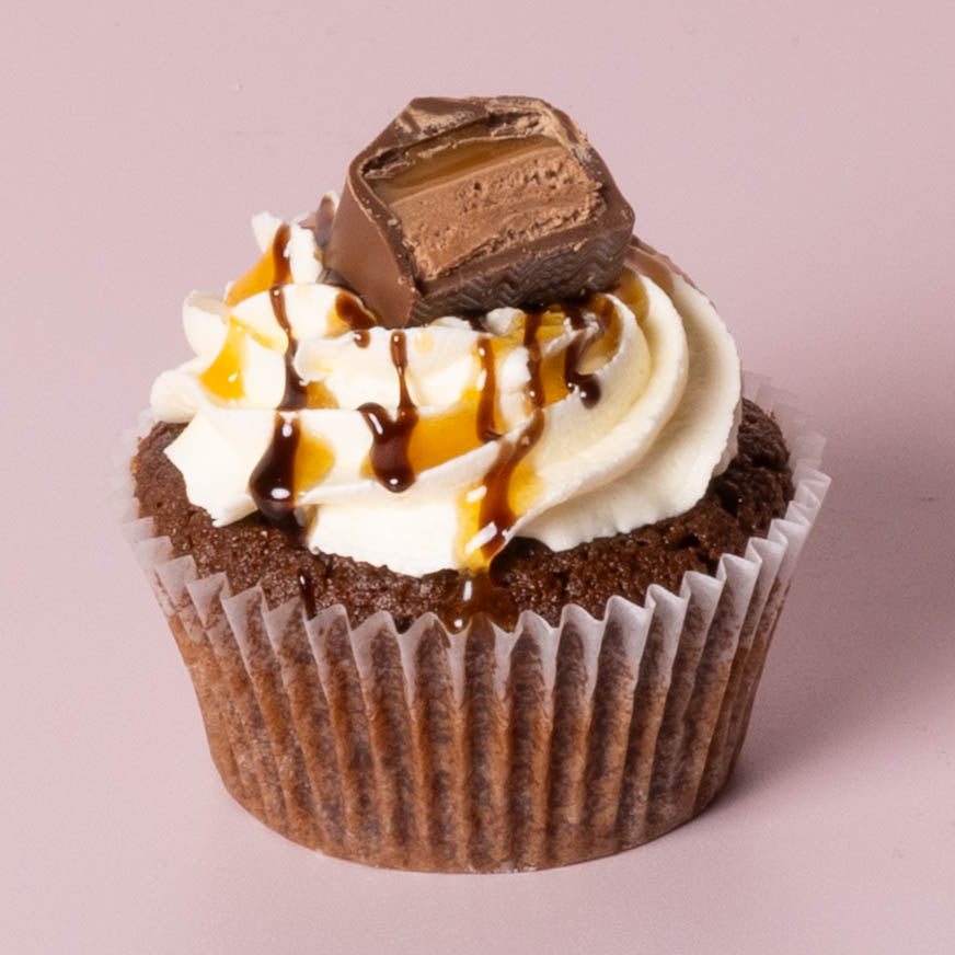 Indulgence at its finest. Choose between our fluffy vanilla or rich chocolate base, loaded with chunks of Mars Bar, drizzled in silky chocolate and gooey caramel sauce, and topped with a swirl of smooth buttercream. It’s a sweet, chewy, and utterly irresistible treat that hits all the right notes of chocolatey, caramel goodness.