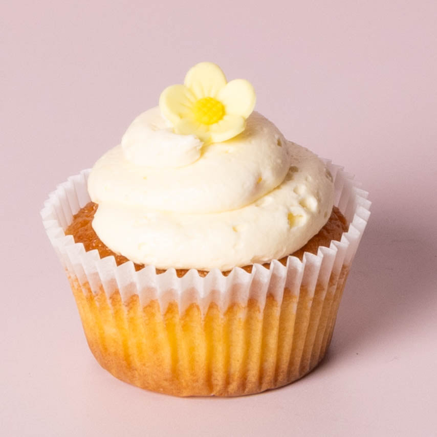 A soft, fluffy vanilla base topped with velvety passionfruit buttercream and finished with a delicate edible blossom. Sweet, tangy, and totally refreshing, this cupcake is a tropical dream in every bite.