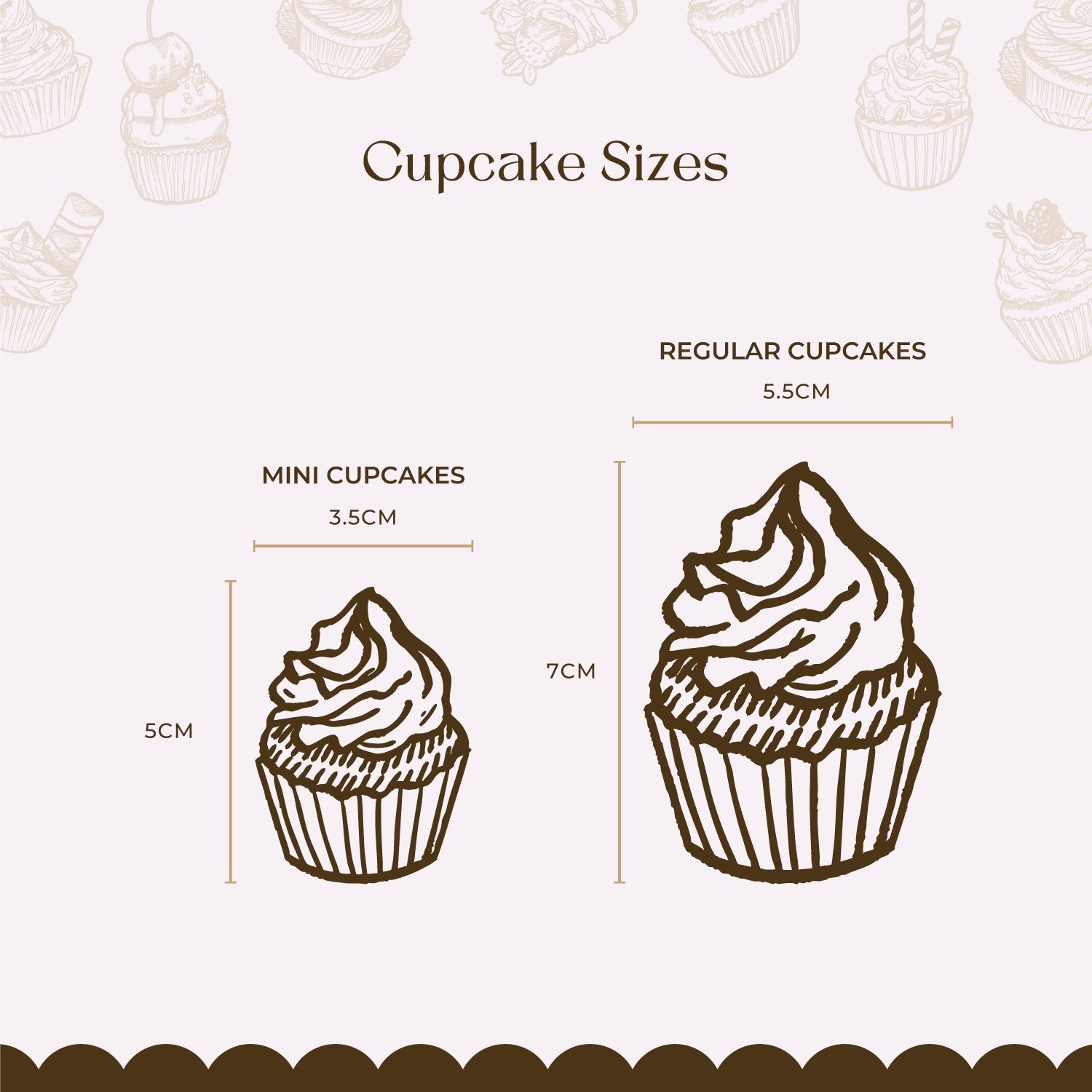• Mini cupcakes: 3.5 cm wide × 5 cm high