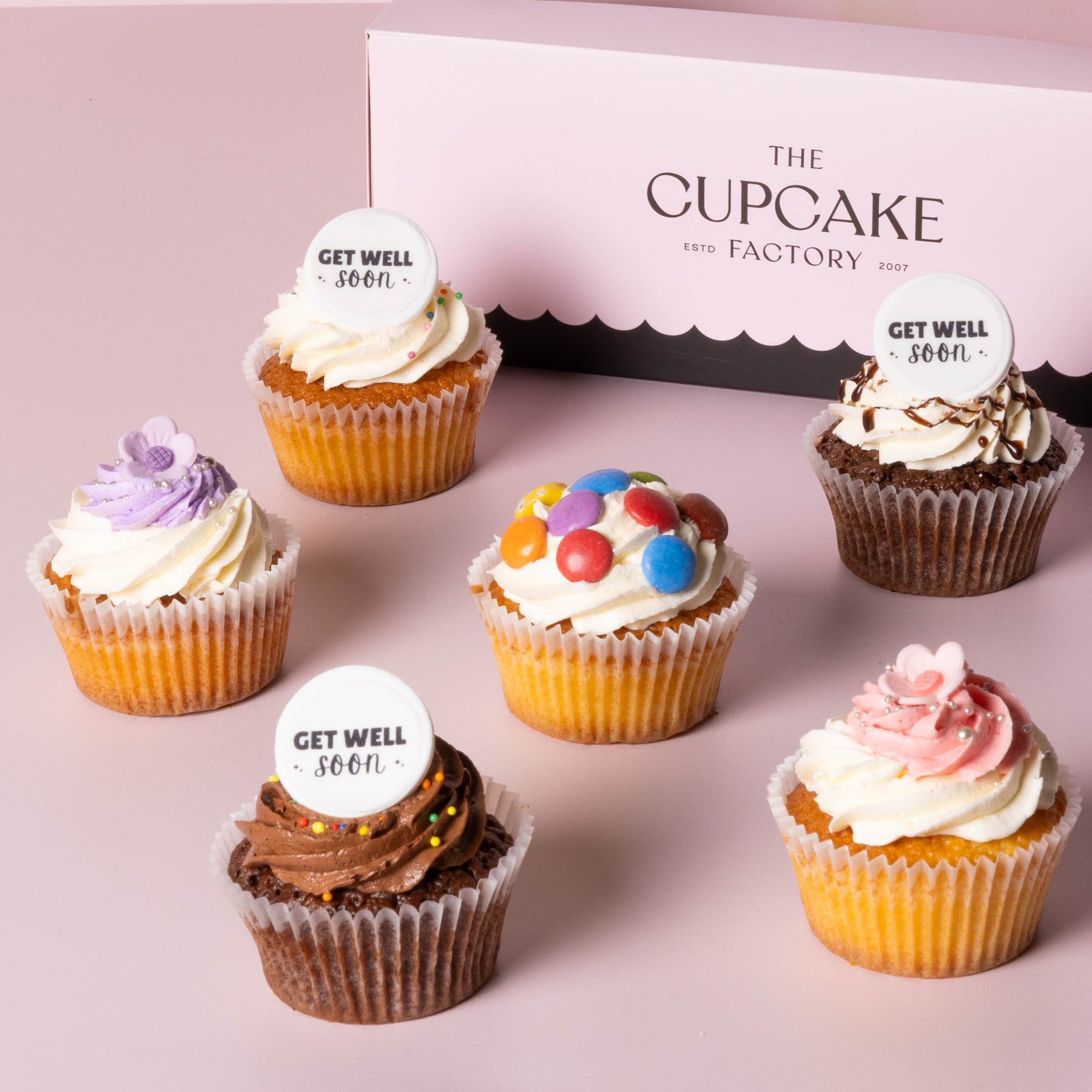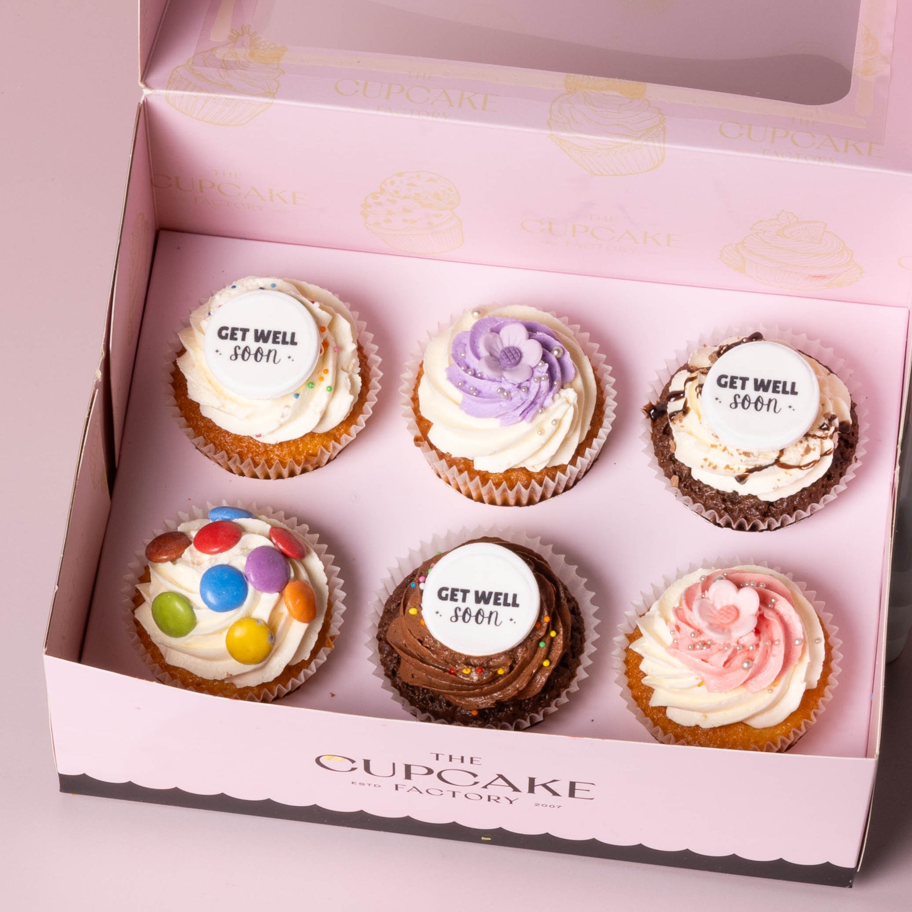 Say it with cupcakes, because a little sweetness is the perfect cure for a tough day. Our Get Well Soon cupcakes come in Classic, Decadent, or Indulgent styles, each topped with a row of "Get Well Soon" plaques, swirled with rich buttercream, and sumptuous decorations.